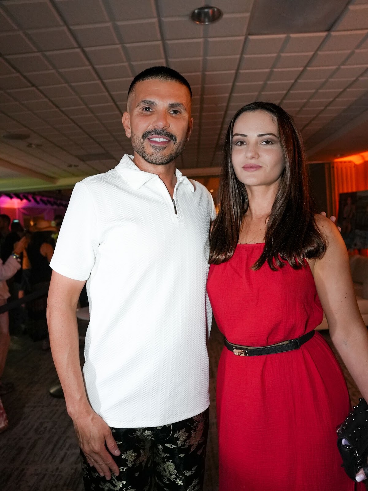 Photo Credit: Aleksandr Gurman. Erik Rosete, Fashion Designer, Founder of Art Hearts Fashion and Tatyana Bondarenko, Abstract Expressionist at the Art Hearts Fashion during the 2025 Miami Swim Week